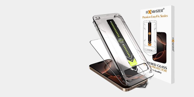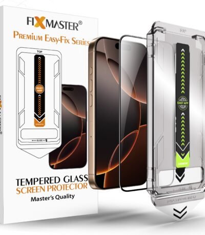 iPhone 16 Pro Max Uyumlu Fixmaster Premium Easy Fix Kolay Takma Aparatlı, Toz Bırakmayan Yüksek Kaliteli ve Dayanıklı Aluminosilikat Temperli Cam Ekran Koruyucu