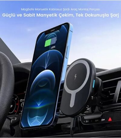 iPhone 11-12-13-14-16 Plus-16 Pro Max Uyumlu Magsafe Şarj Telefon Tutucu Kablosuz Araç Içi Tutucu