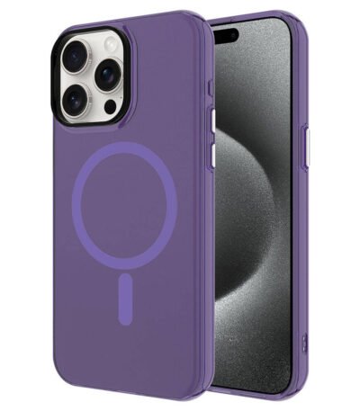 iPhone 15 Pro Max Uyumlu MagSafe Özellikli Mor Buzlu Transparan Kılıf