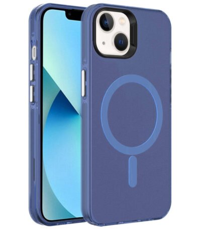iPhone 15 Pro Uyumlu MagSafe Özellikli Mavi Buzlu Transparan Kılıf