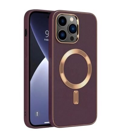 iPhone 14 Pro Uyumlu MagSafe Özellikli Derin Mor Deri Kılıf
