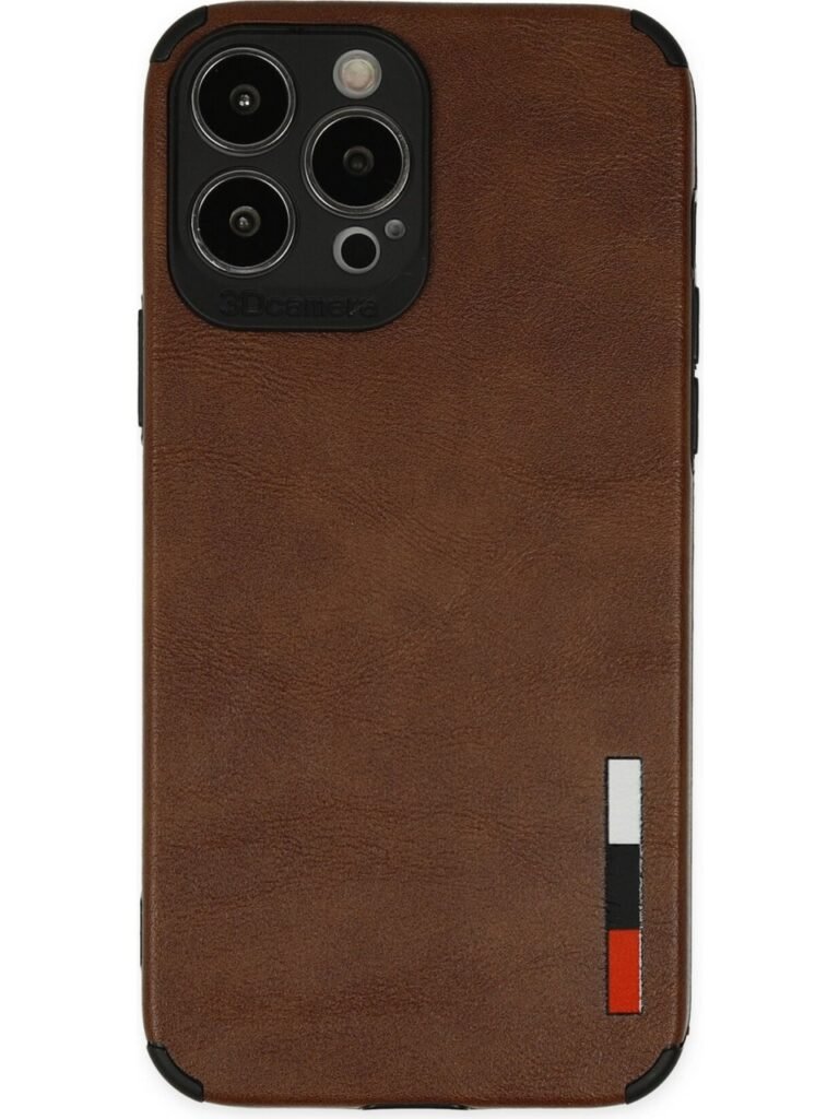 iPhone 13 Pro Max Uyumlu Deri Görünümlü Kahve Rengi Kılıf