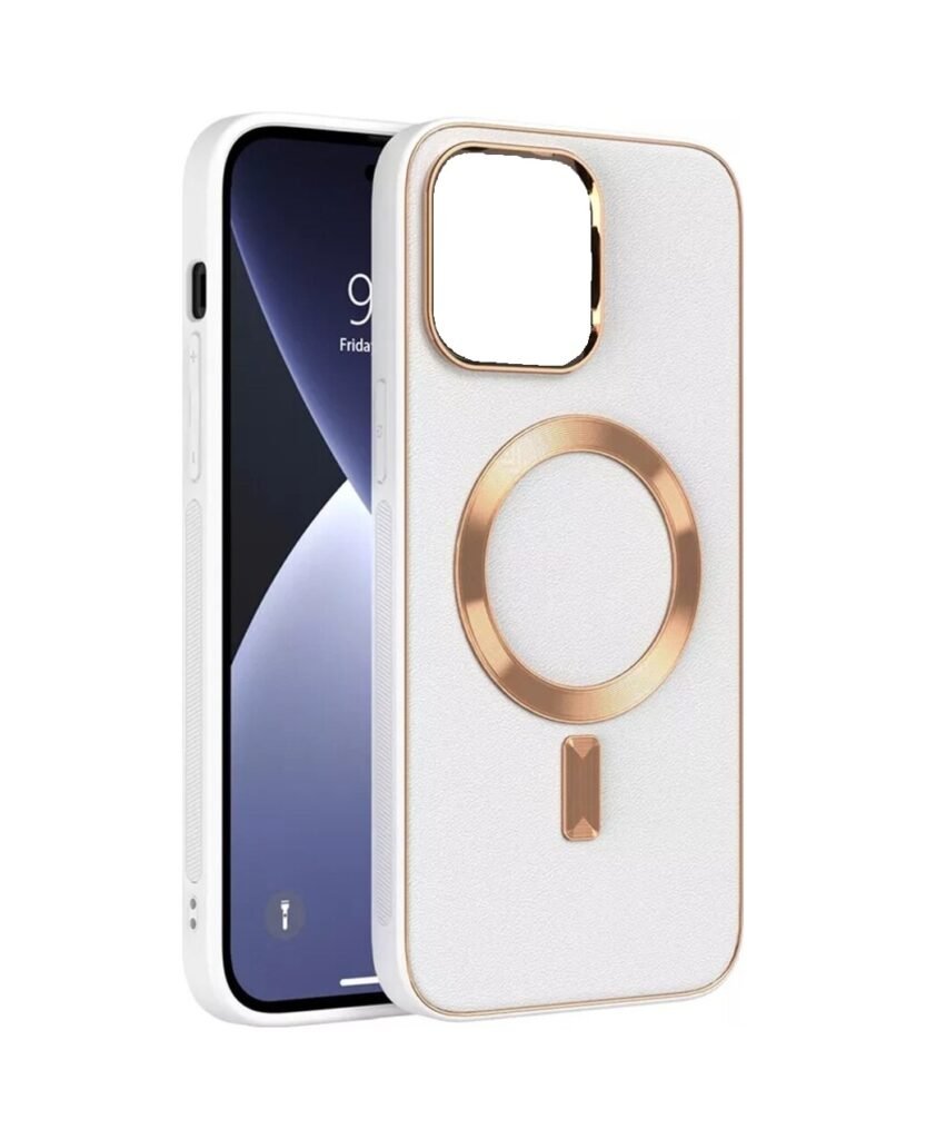 iPhone 14 Uyumlu Magnetic Deri Beyaz Kılıf